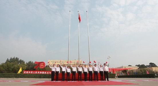 紧接着全体员工高喊“祝伟大的祖国繁荣昌盛”、“祖国万岁”,口号声整齐响亮,铿锵有力。