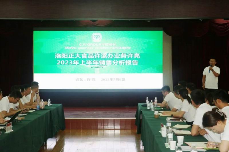 2023年7月8日,洛阳正大上半年工作总结会议在五楼会议室隆重召开,正大集团河南区猪肉食品事业副总裁、wending问鼎官方在线入口总经理沈道华、生产与行政外围主管及全体销售人员参加会议。